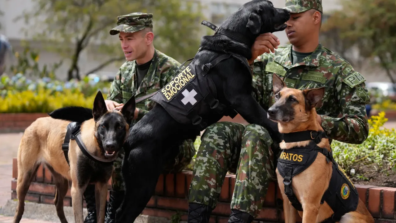 Sejumlah anjing terapi, yang dikenal sebagai "pasukan berbulu", menjalankan misi unik di Rumah Sakit Militer Pusat di Bogotá, membantu meningkatkan semangat prajurit yang sedang pulih dari luka-luka akibat perang.