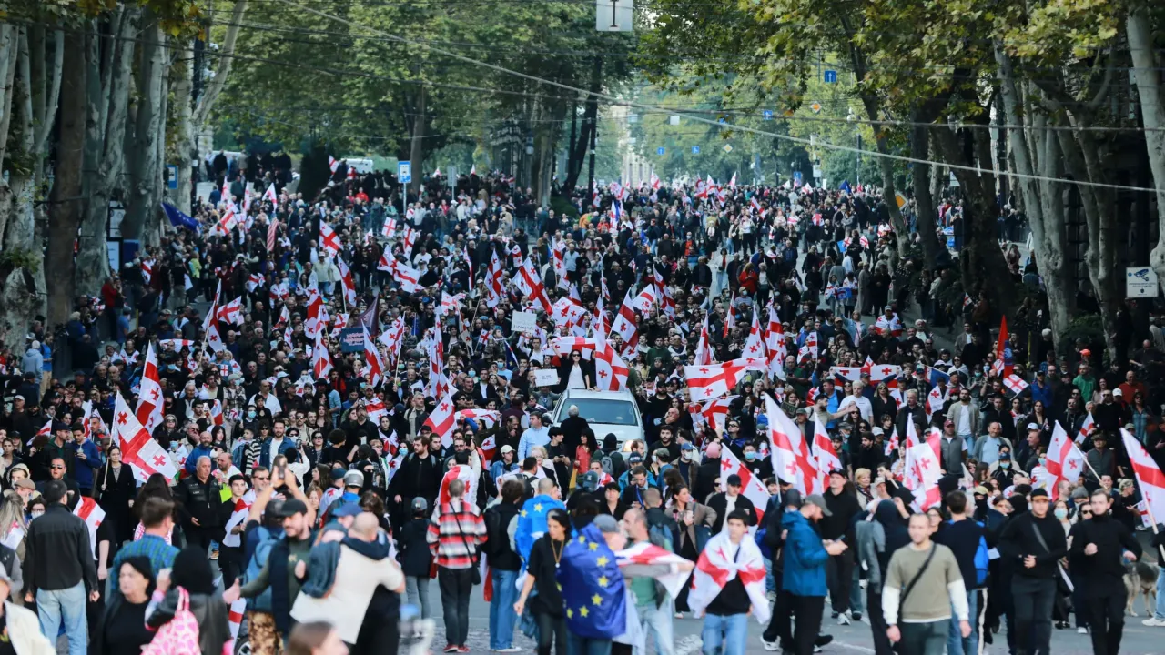 Ribuan warga berkumpul di pusat ibu kota, Tbilisi, untuk memprotes kebijakan represif dari partai penguasa, Georgian Dream. Mereka menilai partai tersebut berusaha mengalihkan Georgia dari cita-cita demokrasi menuju pengaruh Rusia.